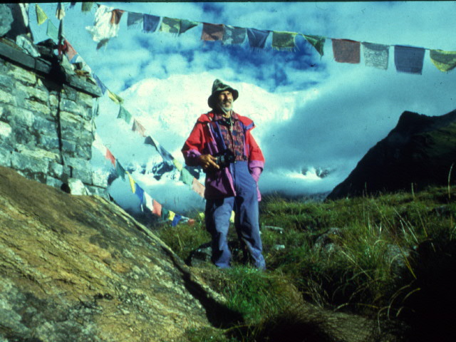 Beim Abstieg vom Basiscamp wollte ich mein verspätetes Morgengeschäft erledigen und begab mich deswegen hinter einen Busch. Dieser Fleck war aber leider schon besetzt! Ein riesiges Untier, größer als ich, erhob sich und wir standen Aug in Aug für einige Sekunden da. Plötzlich machte es einen lauten Grunzer und eilte aufrecht gehend auf die Felswand zu. Ohne sichtbare Anstrengung, kletterte der Riesenaffe mühelos in die Steilwand. Fieberhaft schoss ich einige Fotos, baute mein Stativ auf und drehte einen 10 minütigen Videofilm. Danach sagte Prem zu mir, dass war der Snowpiple. Er habe schon öfter von ihm gehört, ihn aber nun zum ersten mal zu Gesicht bekommen. Noch einige male zeigte ich Bergbewohnern den Streifen und einige nahmen das Wort Yeti in den Mund. Nach 27 Tagen waren wir zurück in Pokara, wo sich der Kreis unseres 1.anstrengenden Trekkingtrips schloss.