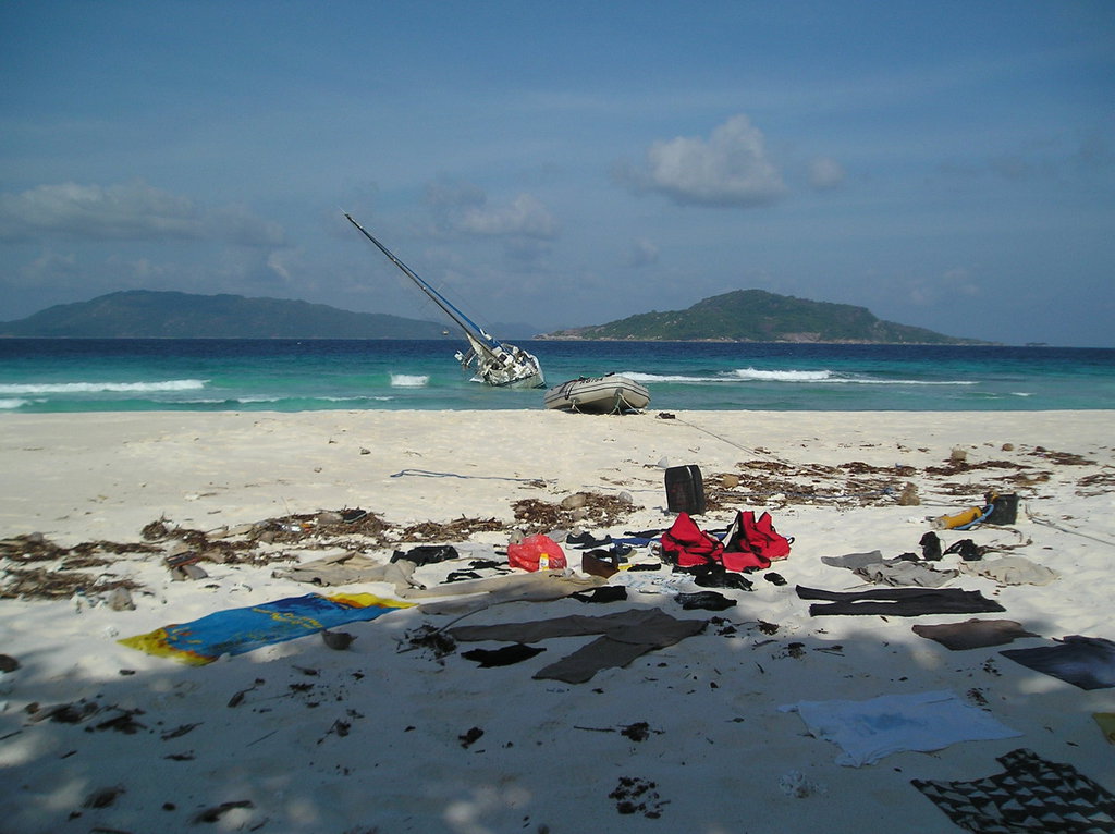 In La Digue wurde ich sofort auf 200 Euro für die Seenot-Rettung angehalten, obwohl ich nackt bis auf einen Surfshorty war. Sofort bat ich beim Hafenamt, Ministerium für Touristik, beim Präsidenten und der deutschen Botschaft um Hilfe, aber ich stieß nur auf mitleidloses Schulterzucken. Um Hilfe bei den Einheimischen bittend, dass man mich zur 5 Sm entfernten Insel bringt, um Sachen vom Boot zu retten, scheiterte an den hohen Zubringerpreisen, an denen sie sich gesund stoßen wollten.
