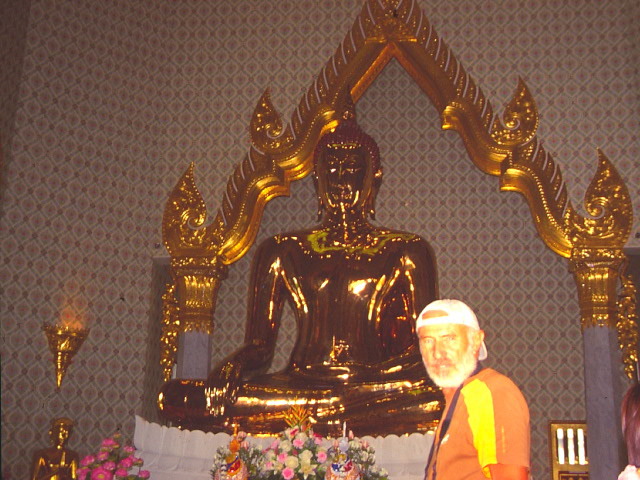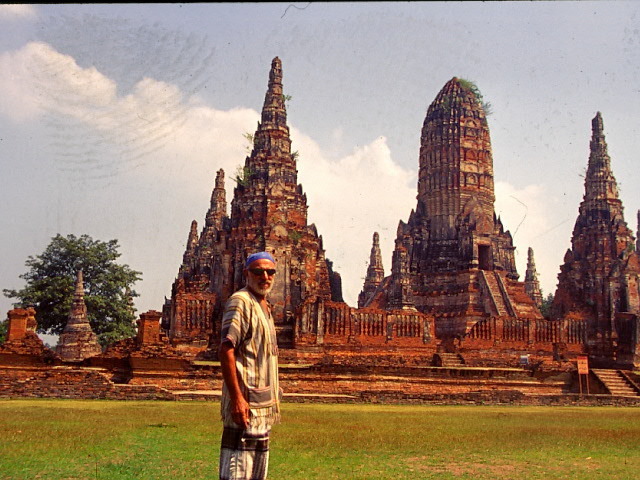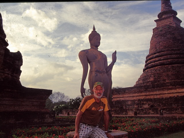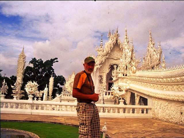 Mit dem Nachtbus fuhr ich das erste Mal am 05.12. nach Bangkok, es war genau der Geburtstag von König Bhumiphol. Ganz Bangkok war 3 Tage auf Party getrimmt. Mein Besuch galt natürlich dem riesigen Königspalast, der an diesem Tag zum Teil geöffnet war. Gleich daneben glänzt der gewaltige Tempel Wat Phra Kaeo. Es folgten Wat Pho, Wat Suthat, Wat Arun, der Lak Muang Shrine, der Wat Traimit, mit seinem 3 Meter hohen Buddha aus purem Gold. Selbstverständlich durfte ein Thai-Boxkampf nicht fehlen und eine Bootsfahrt durch die Kanäle von Bangkok. Danach fuhr ich mit dem Zug nach Bang Pa In, wo der Märchen-Sommerpalast von König Rama V. steht. Per Anhalter ging es weiter nach Ayutthaya der alten Königsstadt. 33 Könige regierten einst in dieser Hauptstadt Thailands. Gewaltige Tempelruinen zeugen von der einstigen Macht der Herrscher. Am besten erhalten ist die gewaltige Klosterstadt Wat Chaiwattanaram. Wieder mit dem Nachtbus ging es nach Chiang Mai. Schon in den ersten Morgenstunden bin ich unterwegs zum dreifach gestaffelten Tempel Wat Phra Sing, der das religiöse Zentrum hier im Norden ist. Hier trifft man konzentriert, die meisten Mönche Thailands. Es folgen Wat Chiang Man und Wat Chedi Luang. Mit einem Taxi fuhr ich dann zum Bergtempel Wat Doi Suthep, mit seinem goldenen Chedi. Es ist die wahre Tempelpracht in Gold. 290 Stufen führen hinauf zum wichtigsten Tempel im Norden Thailands. Pilger a Maß, bevölkern diese prächtige Anlage