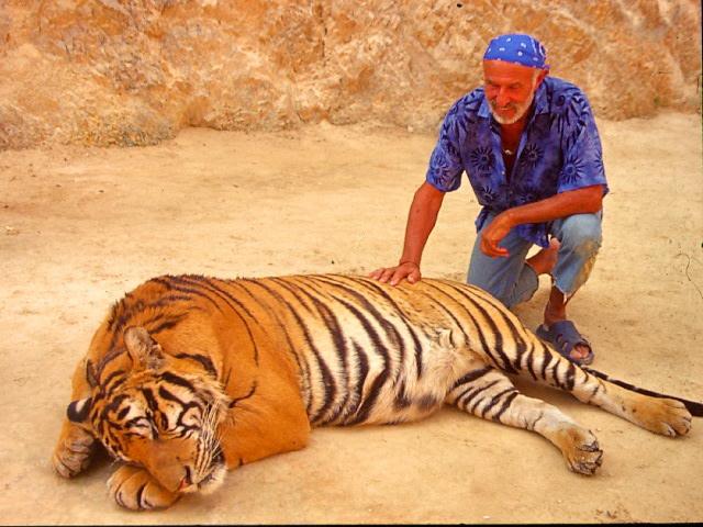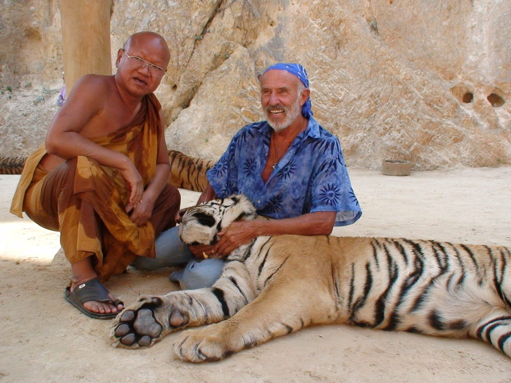 Dort traute ich meinen Augen nicht, wie die Mönche ihre Tiger an der Leine führten, genauso wie wir unsere Hunde. Bald streichelte ich in einem Abgegrenzten Gehege, riesige ausgewachsene Tiger, deren riesige Pratzen, ich mit gemischten Gefühlen betrachtete.