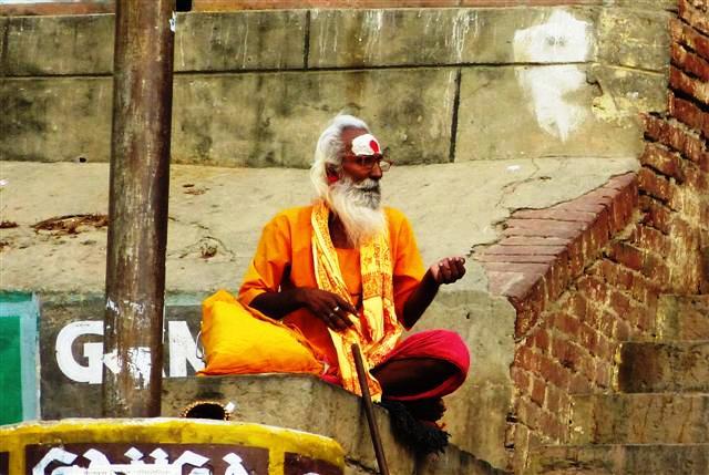 Genug gesehen vom Schweinkram vergangener Epoche, setzte ich mich in den Bus und fuhr nach Varanasi, der Stadt des Todes. Einer Stadt, wo es noch am indischsten zu geht. Mit einem Boot entlang am Ganges, vorbei am „Sormeswar Ghate“ wo die Kranken gebadet werden, am „Dasasvamadh Ghate“, wo die Sadhu‘s mit Asche bestreut meditieren, oder am Jalashayin „Ghate wo die Toten verbrannt werden, vorbei an aufgedunsenen Leichen im Ganges, die mit ihren, durch Gase aufgeplatzten Bäuchen, ein grauenhaftes Bild hergeben. An solchen ereignisreichen Tagen, verstreicht der Tag natürlich wie im Flug. Da am Verbrennungs-Ghate das Fotografieren verboten ist, fragte ich den Guide, wie ich zu guten Fotos kommen kann. Als ich wieder die Journalisten-Masche abziehe, gelingt mir ein Haupttreffer. Ich traute meinen Ohren nicht, als er mir erzählt, dass sein Onkel der Chef des Totenhauses ist, wo davor die Leichen verbrannt werden.