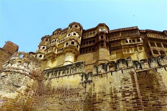 Erholt und voller Tatendrang saß ich darauf im Bus nach Jodpur. Von weiten sieht man schon das bombastische Meheranghar-Fort. Hier mietete ich mir ein Motorrad, trieb mich lange zwischen den Mauern der gewaltigen Anlage herum und besuchte danach den Dilwara-Marmorstempel der Jain.